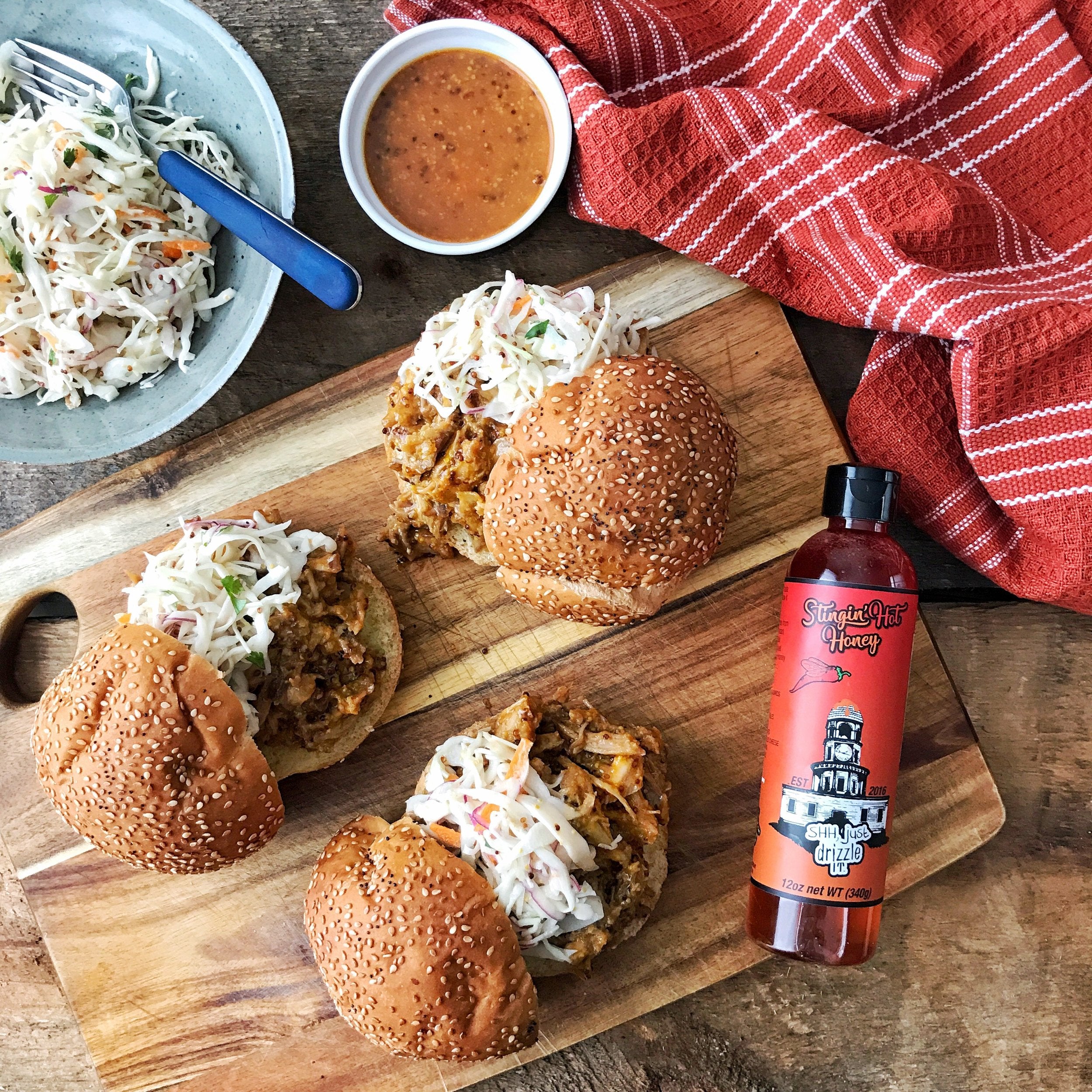 This slow roasted pork shoulder is shredded and tossed in a Carolina style SHH Mustard BBQ Sauce and topped with a tangy, spicy coleslaw. The perfect dish to warm up this winter.